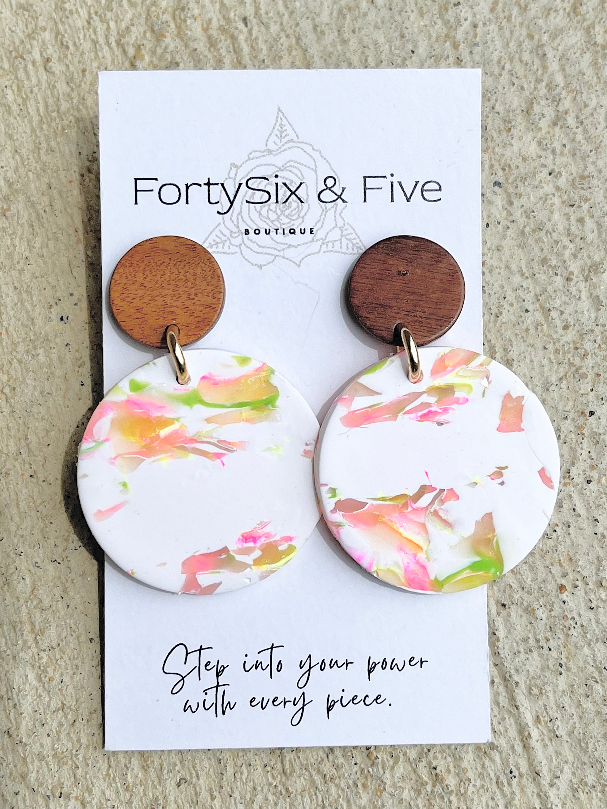THE APRICOT Collection is a custom one of a kind earring. It is perfect for summer with its mixed vibrant pinks, yellows, greens and touches of gold! It can be worn with a subtle basic white and jeans or dressed up for an amazing night out. Because it subtly “ does the most”… it will give just the perfect accent without overdoing it! Try them out and see what everyone is raving about!