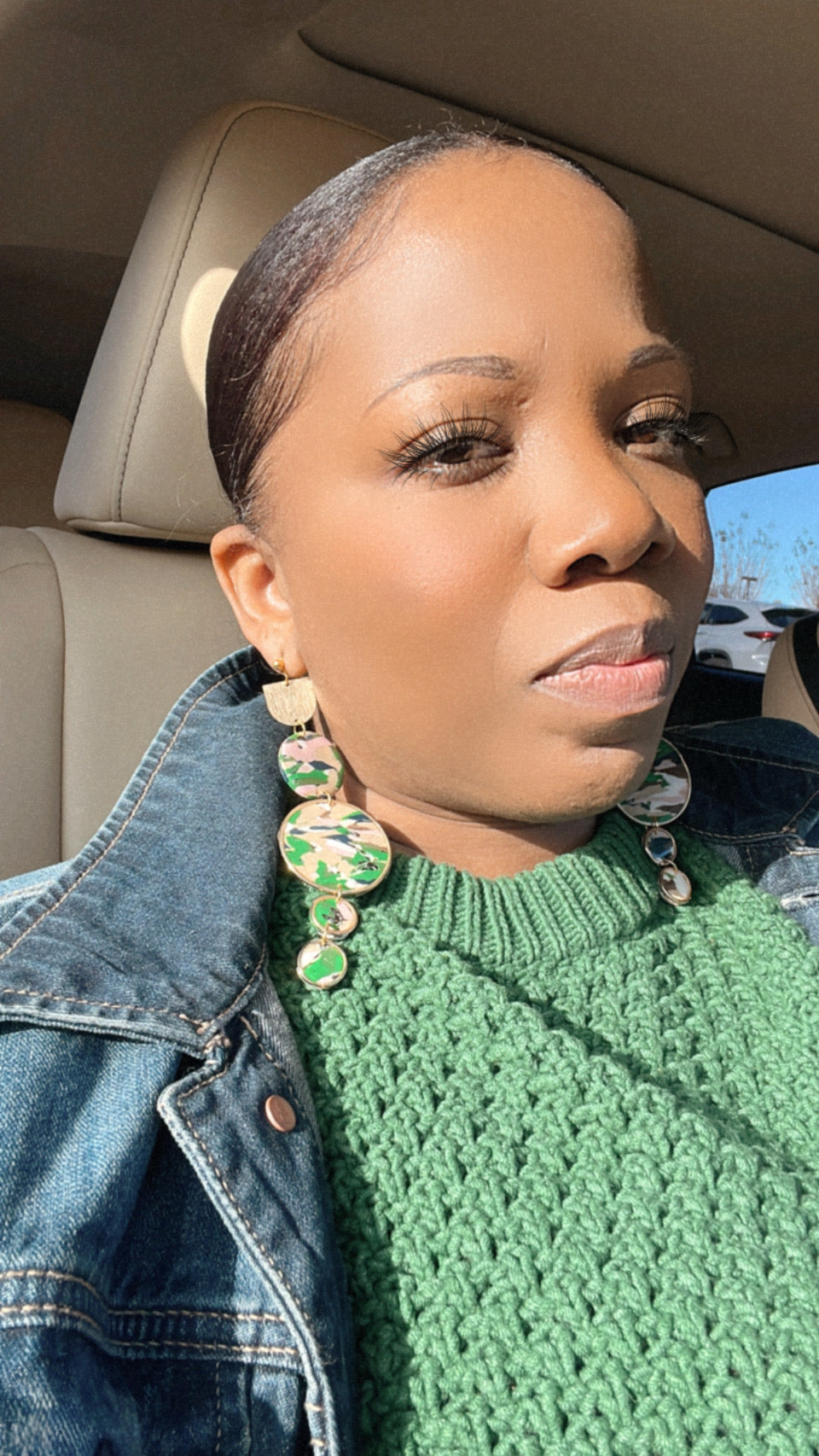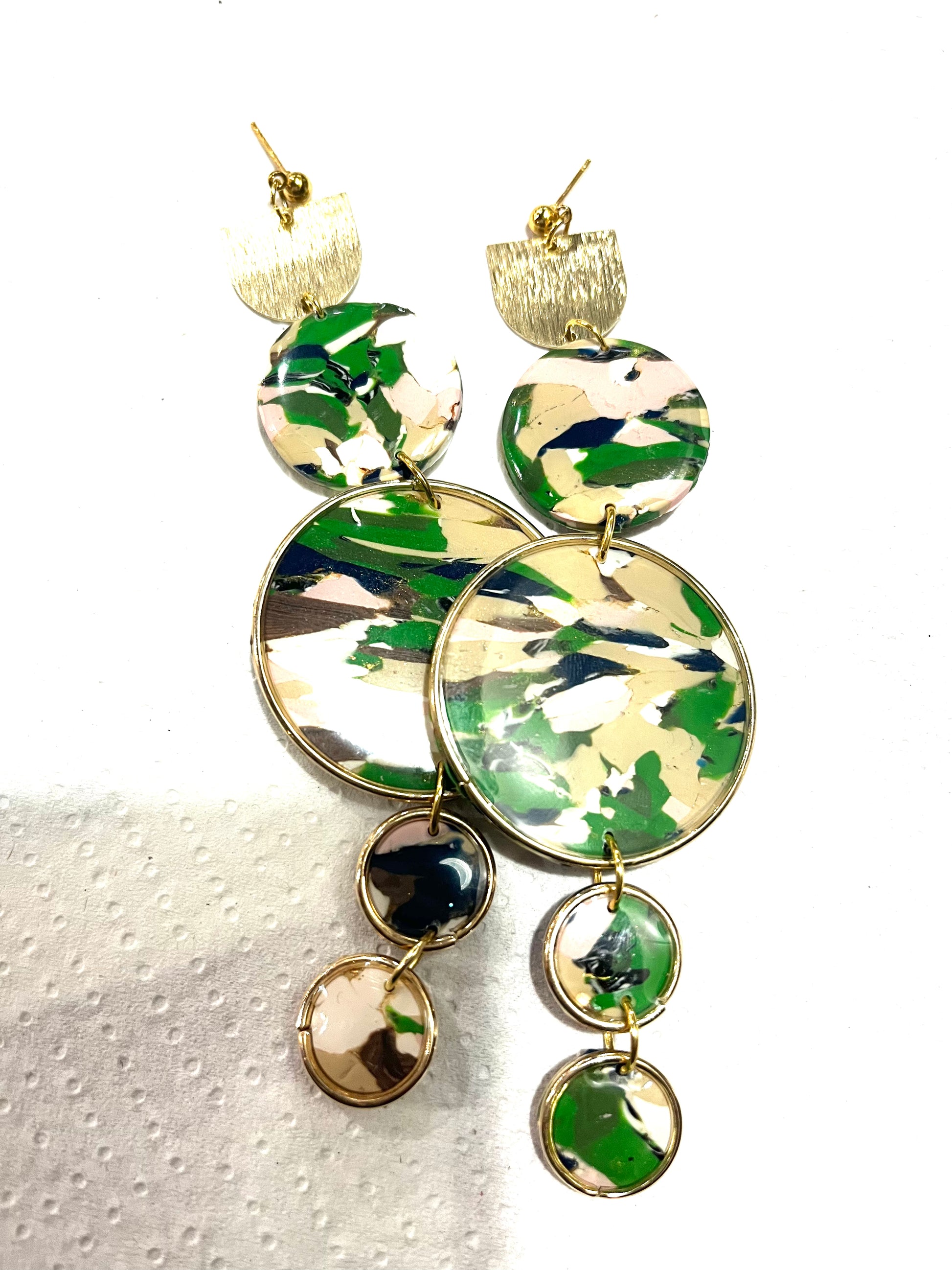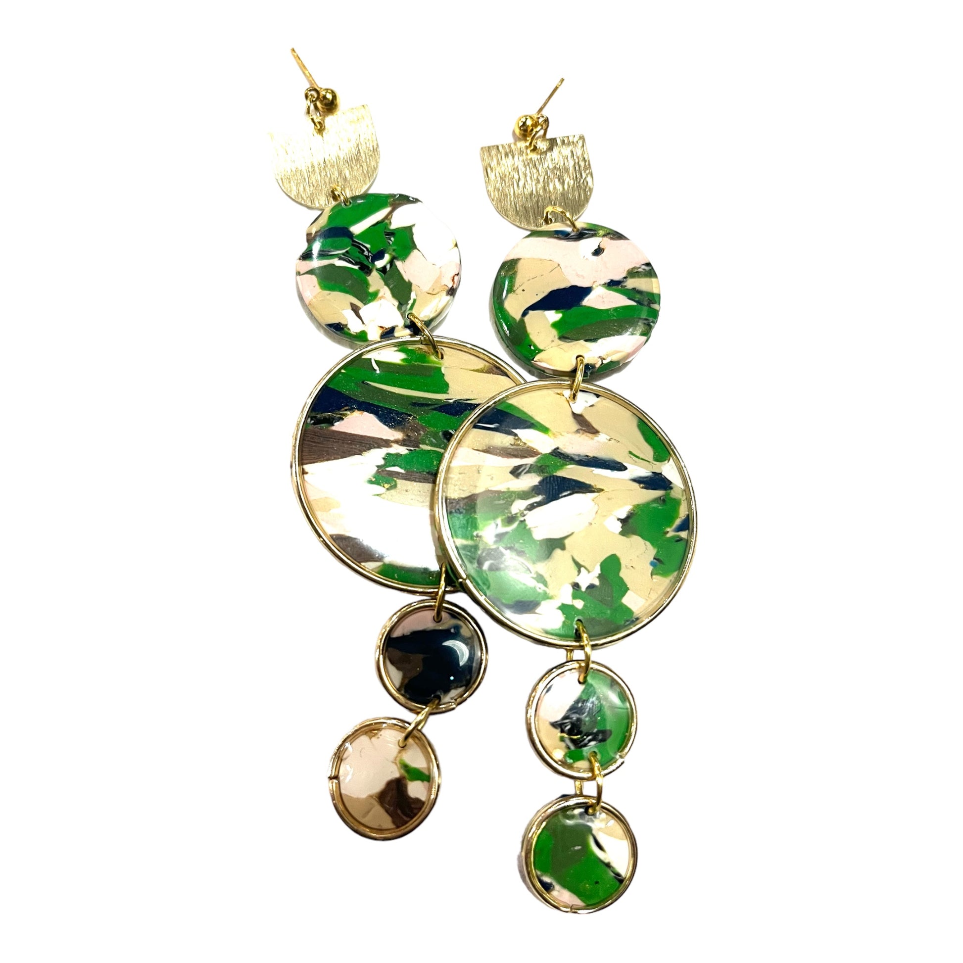 Make a statement with these bold and beautiful Circle Hoop Earrings from the Her Story, Black History Collection by Fortysixandfive! Measuring 4 inches inches in length, these polymer clay earrings are not only stylish but also extremely lightweight, making them comfortable to wear all day long. The cream, navy, green,pink and white design, accented with gold, symbolizes the rich and diverse culture of African-Americans. These post earrings are one-of-a-kind and there is only one available, so don't miss out on this unique piece of wearable art. Embrace your love for black history and stand out from the crowd with these huge statement earrings. Grab the Circle Hoop Earrings now and make a statement like never before!"