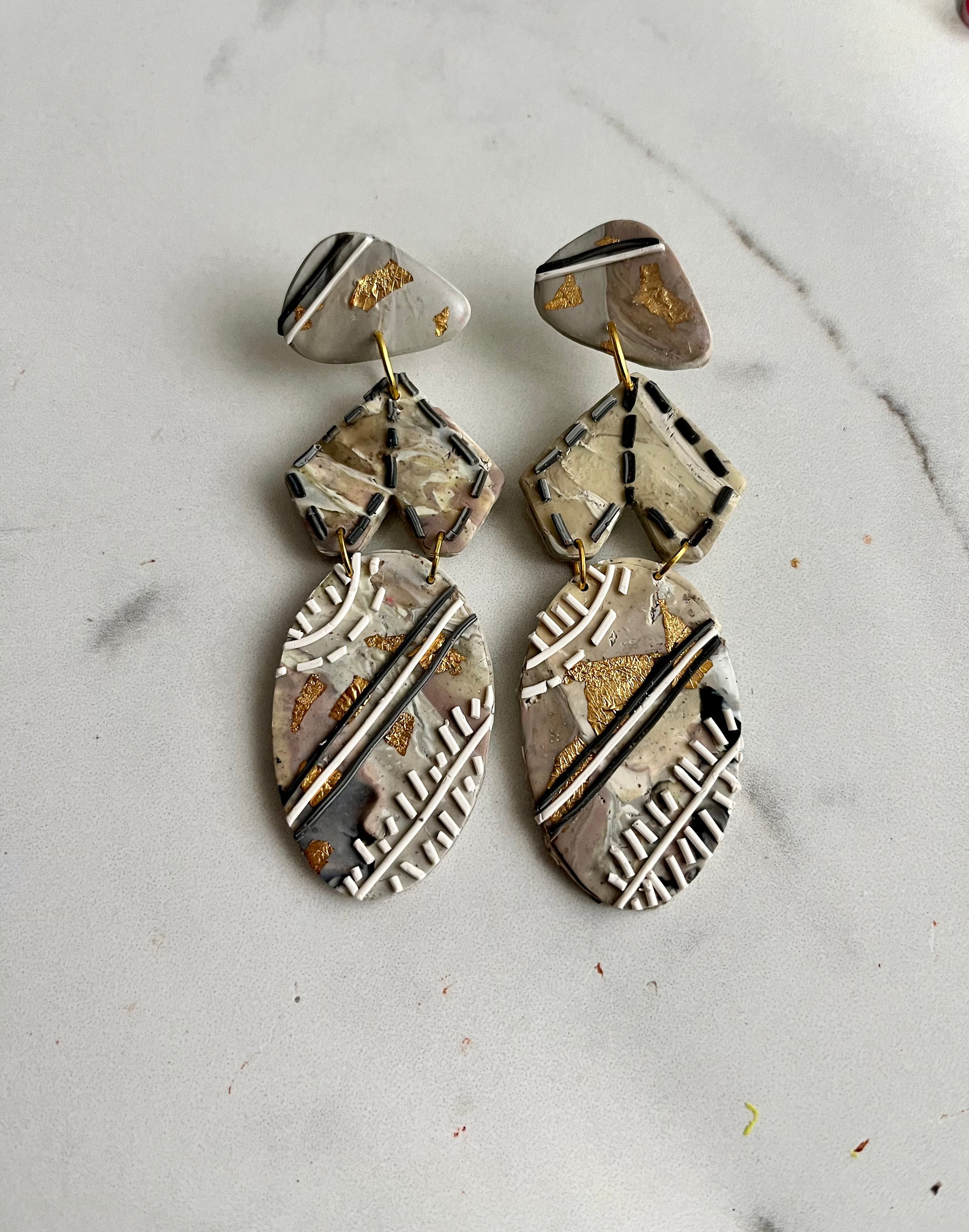 Hey there, boho-lovers! Are you ready to add some serious bohemian style to your wardrobe? These stunning polymer clay earrings are handmade with care, featuring a neutral color palette and gold accents that add a touch of elegance. The tribal prints and fun shapes give them a unique and playful look that is sure to turn heads. These earrings are lightweight and comfortable to wear all day, perfect for those who are always on the go. They are versatile and can be worn with almost anything, whether you're dressing up or down. They are perfect for a special occasion, a casual day out, or even to work. Plus, they're made with hypoallergenic and nickel-free materials, so you don't have to worry about any irritation or allergic reactions. So don't wait, add some bohemian style to your wardrobe with these beautiful handmade earrings. Order now and elevate your style with these versatile and unique earrings.