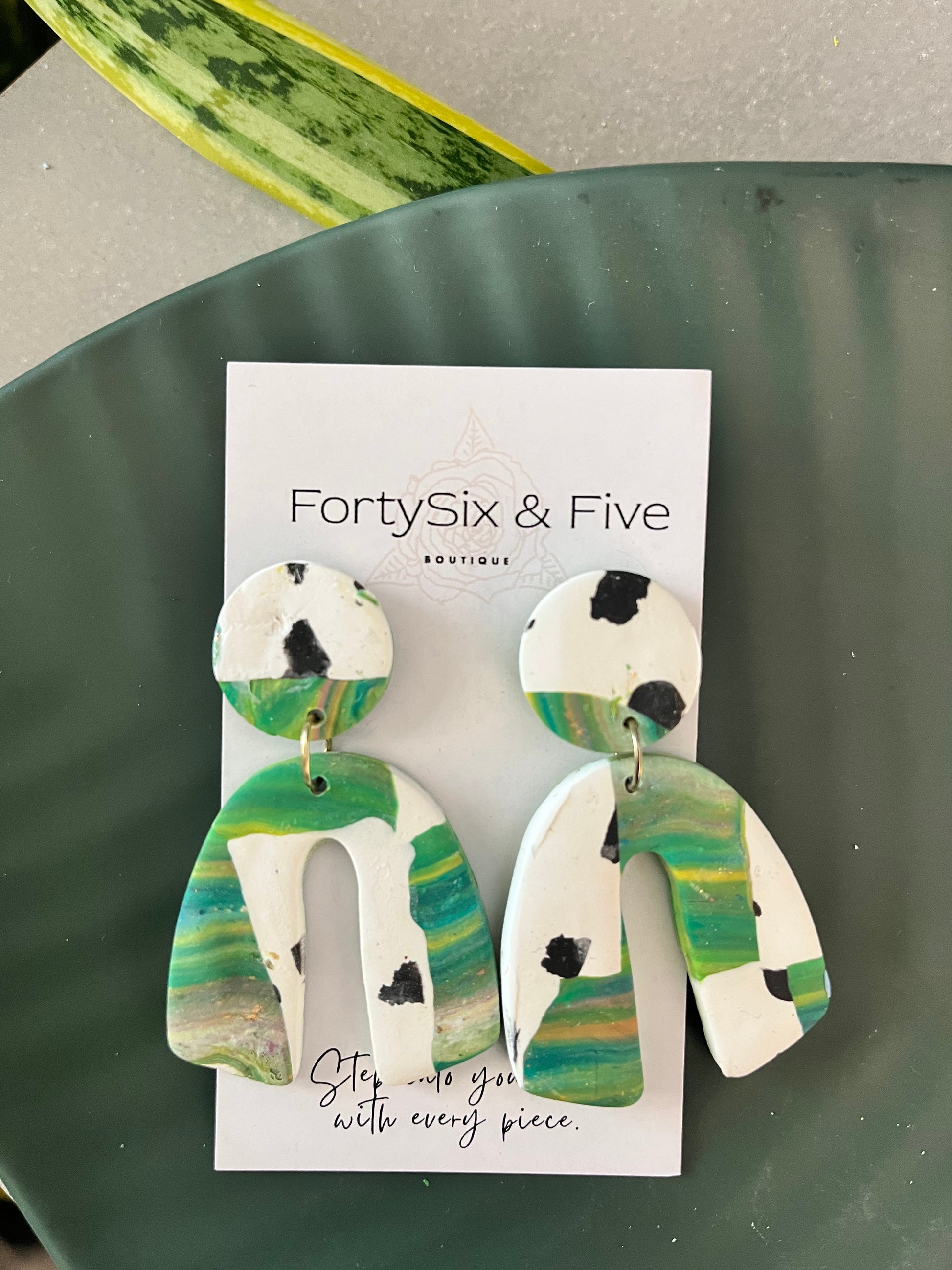 The greens , blues and dashes of pink make this unique earring POP with expression! It has been created with love and passion by our owner and creator Taniesha. This is a perfect gift for yourself or someone you love!
