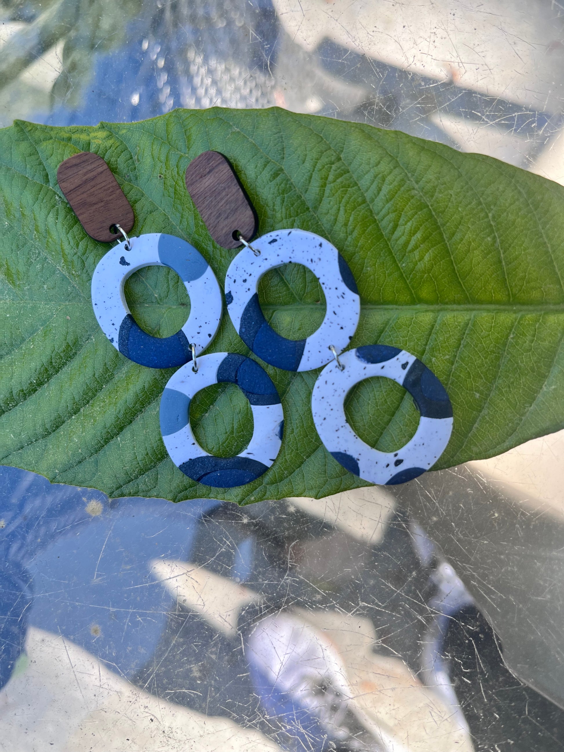 These Infinite fun dangles feature a 2 inch polymer clay double circle design with a lightweight wooden topper. It's the perfect mix of whimsy and playfulness to add to any outfit!