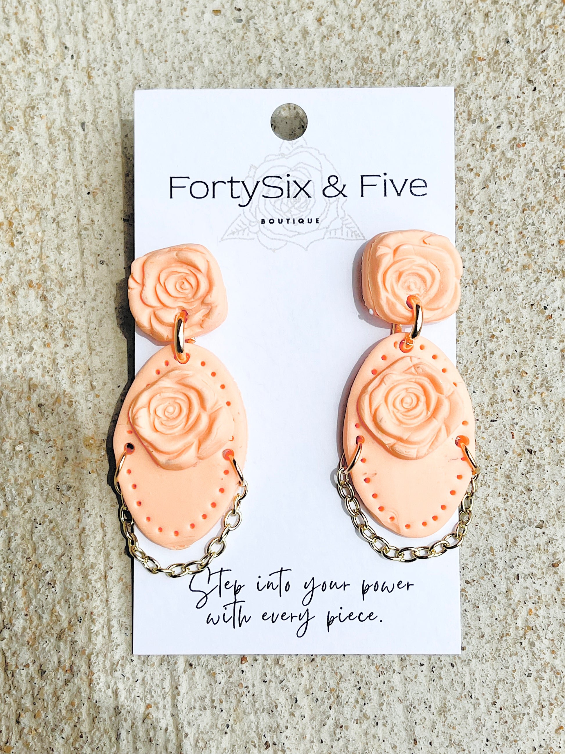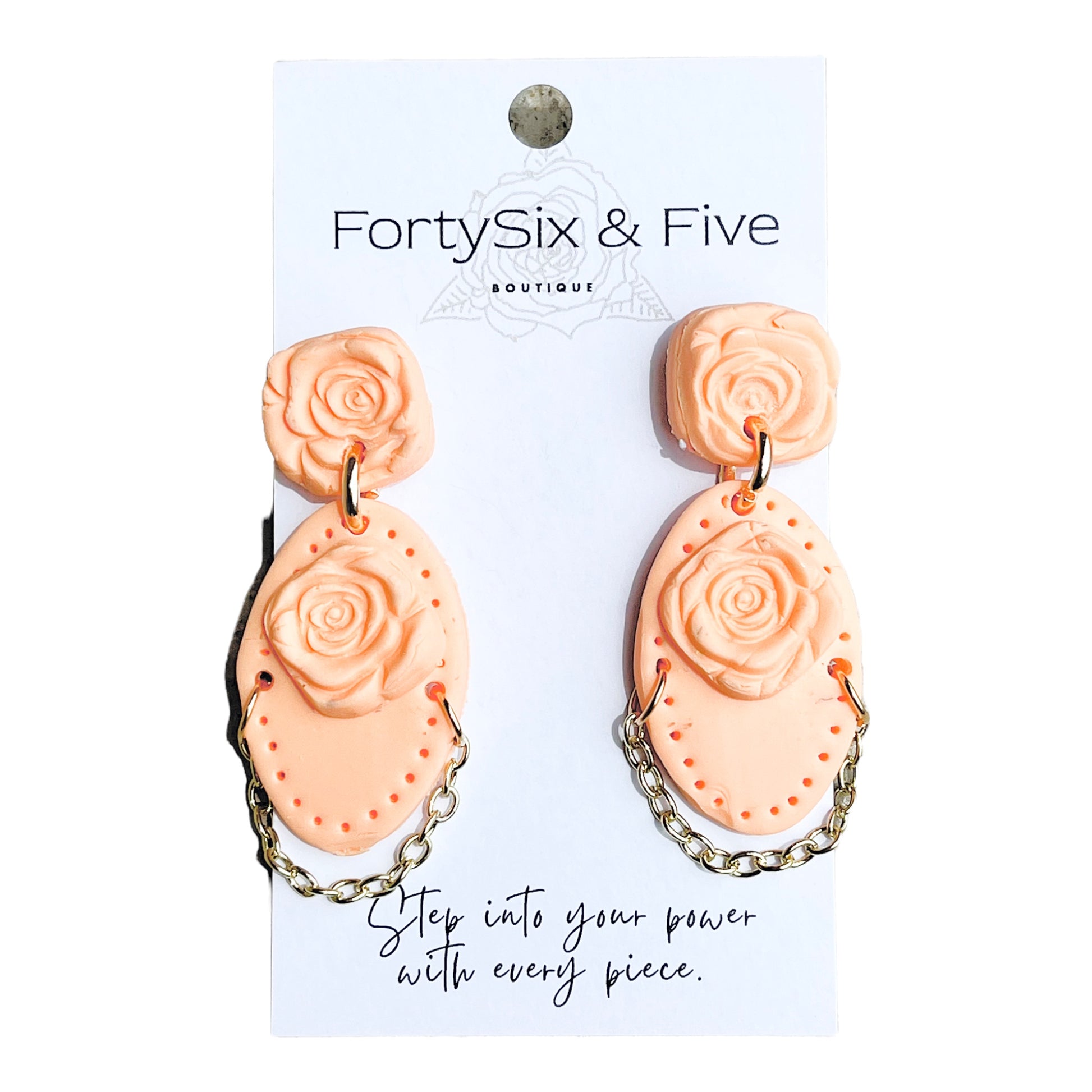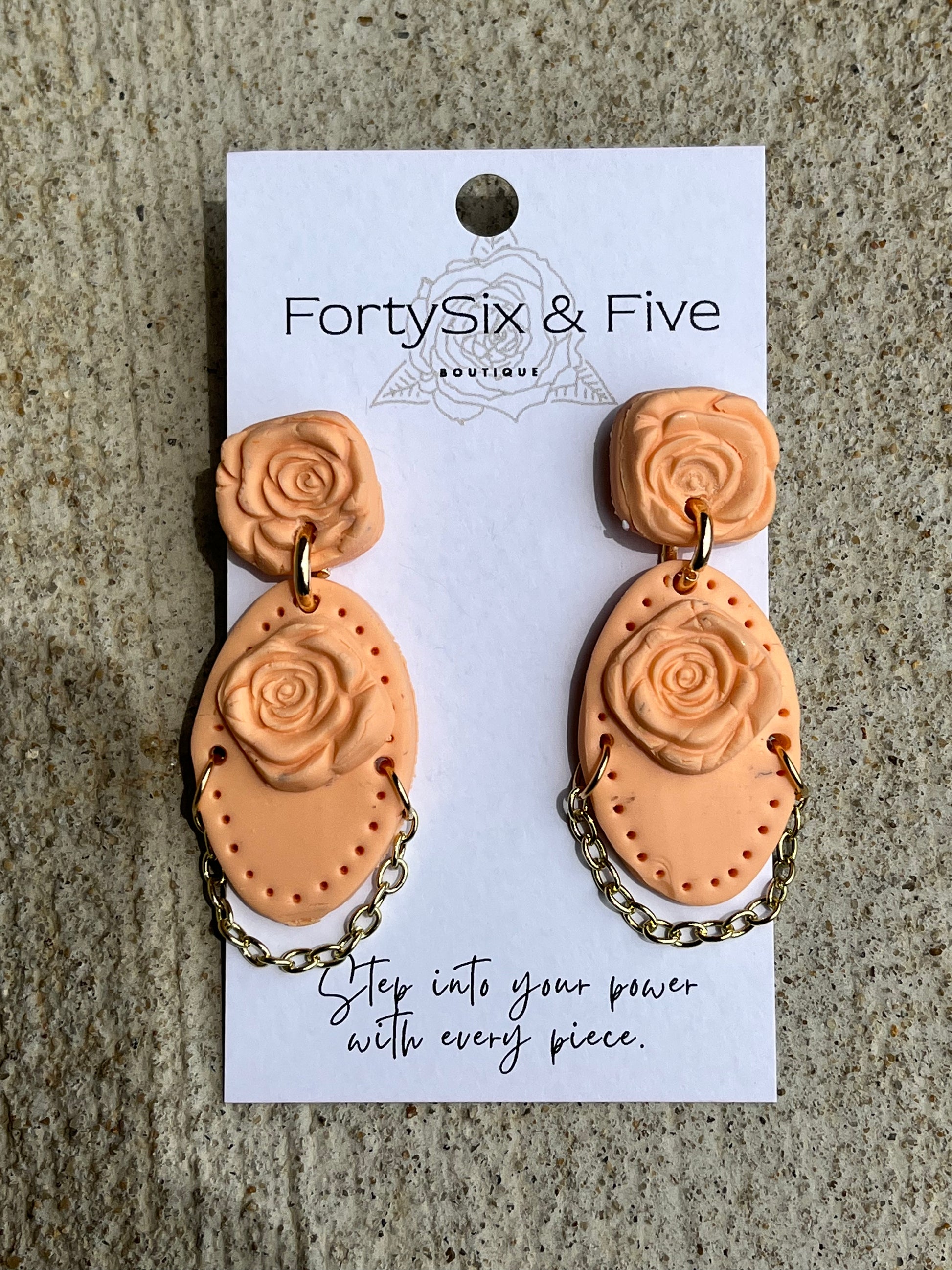 THE APRICOT Collection is a custom one of a kind earring. It is perfect for summer with its mixed vibrant pinks, yellows, greens and touches of gold! It can be worn with a subtle basic white and jeans or dressed up for an amazing night out. Because it subtly “ does the most”… it will give just the perfect accent without overdoing it! Try them out and see what everyone is raving about!