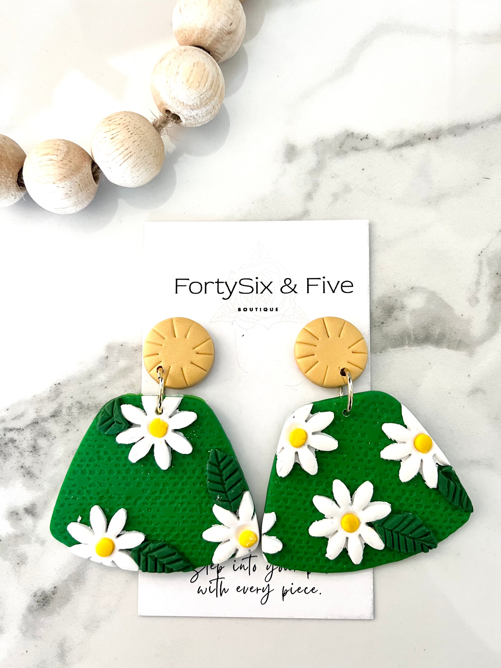 The Kelly green and white flowers with the pops of yellow offer a cute whimsical accessory that is sooo necessary for the upcoming months. It has been created with love and passion by our owner and creator Taniesha. This is a perfect gift for yourself or someone you love!