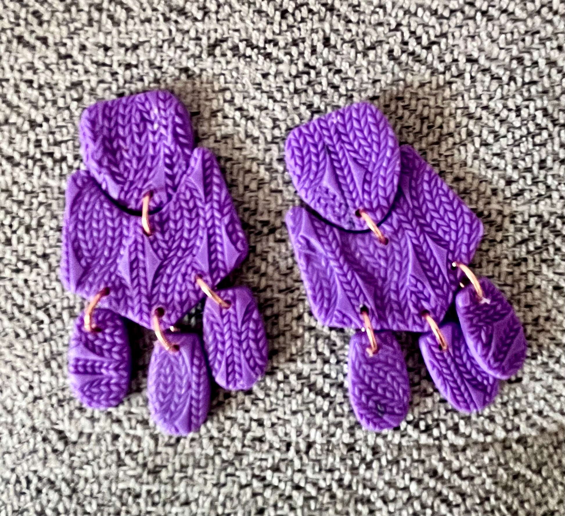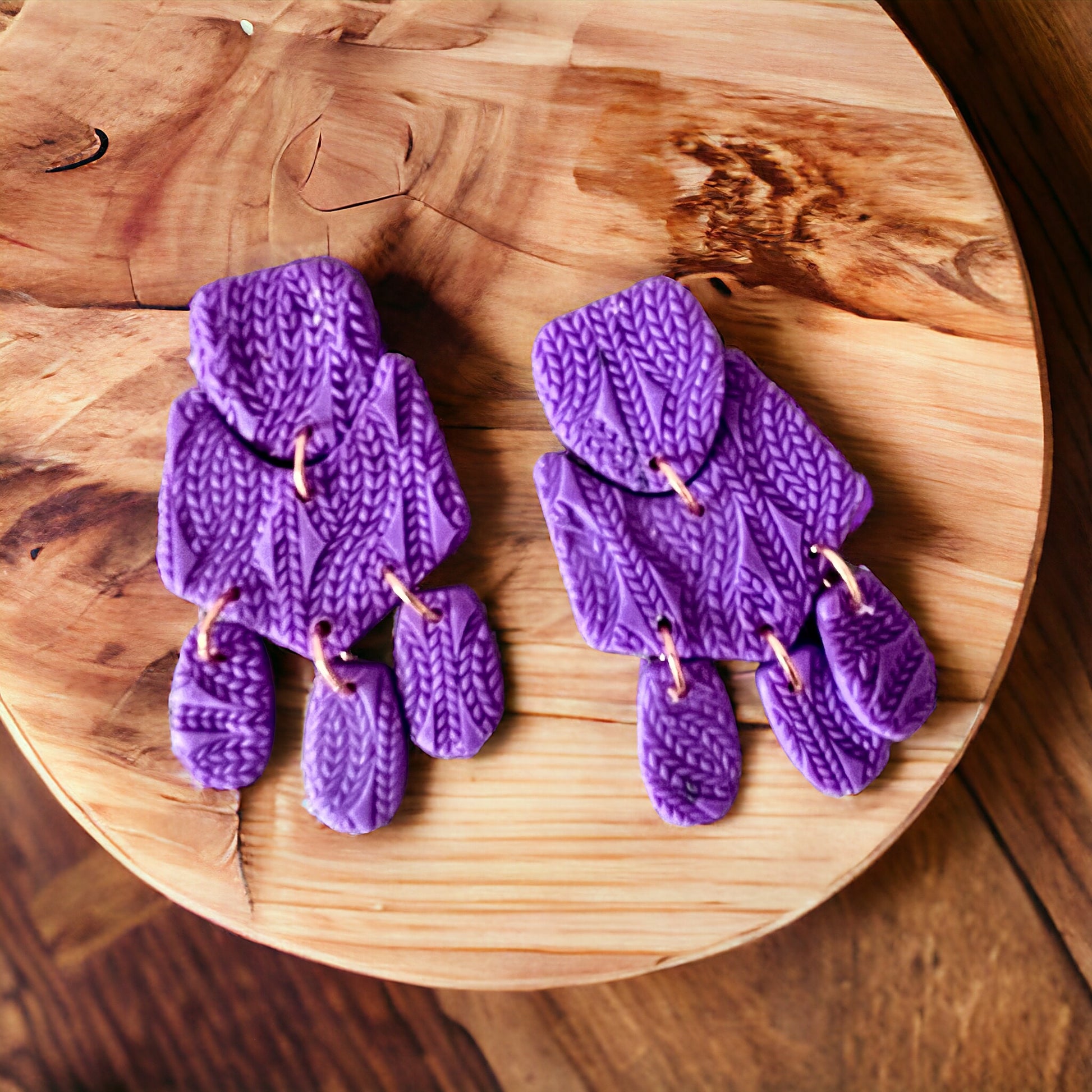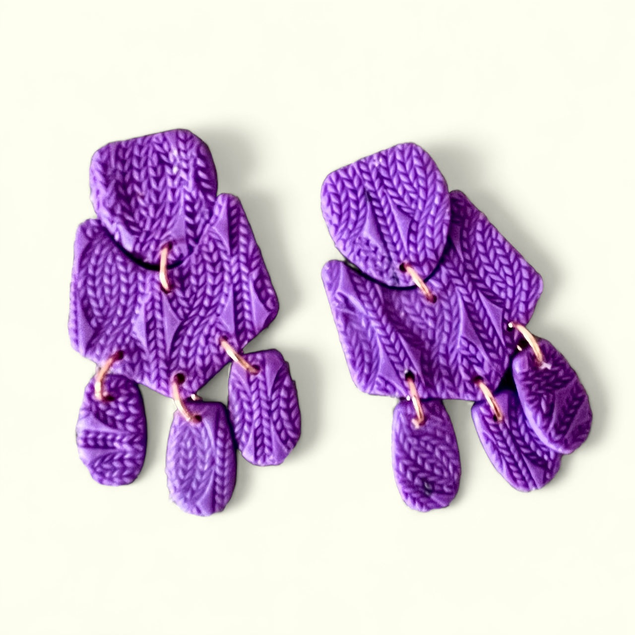 Revamp your earring game with these funky and lightweight purple lilac mini- statement earrings in a bold and daring polymer clay design. These must-have earrings  are 2.5 inches long and comes in a fun and flirty lavendar color.