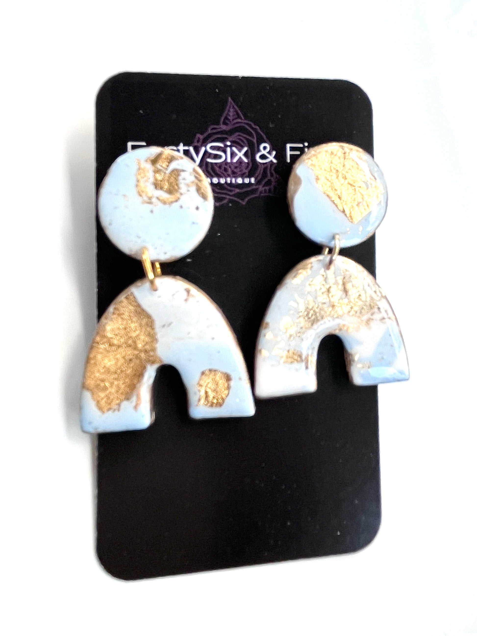 Introducing our exquisite Sky and Beach-Inspired Polymer Clay Earring, a one-of-a-kind masterpiece that captures the serene beauty of the heavens meeting the sea. Crafted with precision and love, this 2-inch marvel is delicately molded from sky-blue polymer clay, adorned with elegant gold accents that evoke the essence of sun-kissed shores.