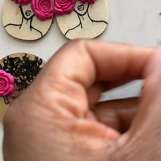 it’s the feminine beauty that shines for me in this beautiful hand painted wooden piece. It hangs at two inches from the lobe and are incredibly lightweight!