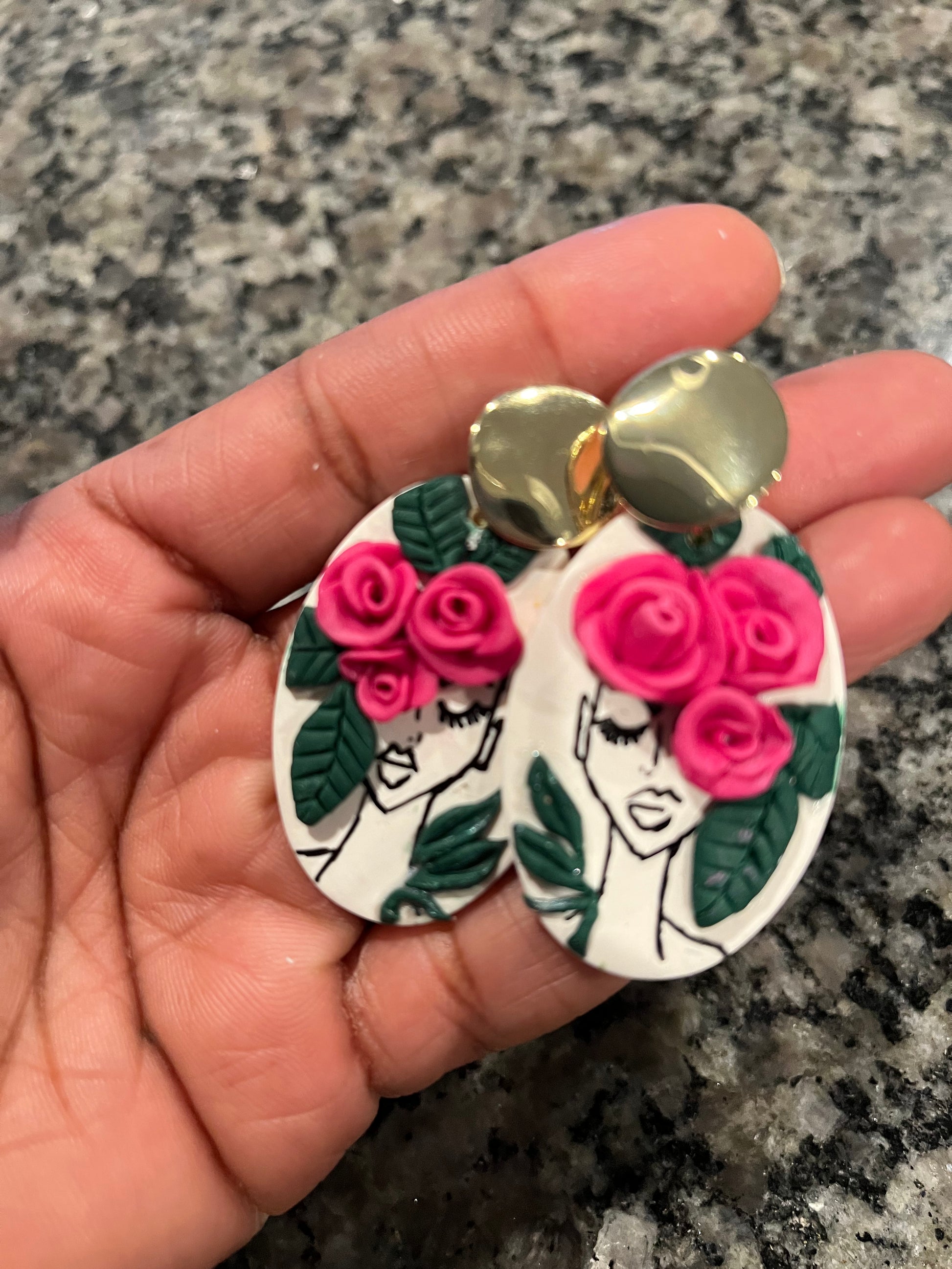 it’s the feminine beauty that shines for me in this beautiful hand painted wooden piece. It hangs at two inches from the lobe and are incredibly lightweight!