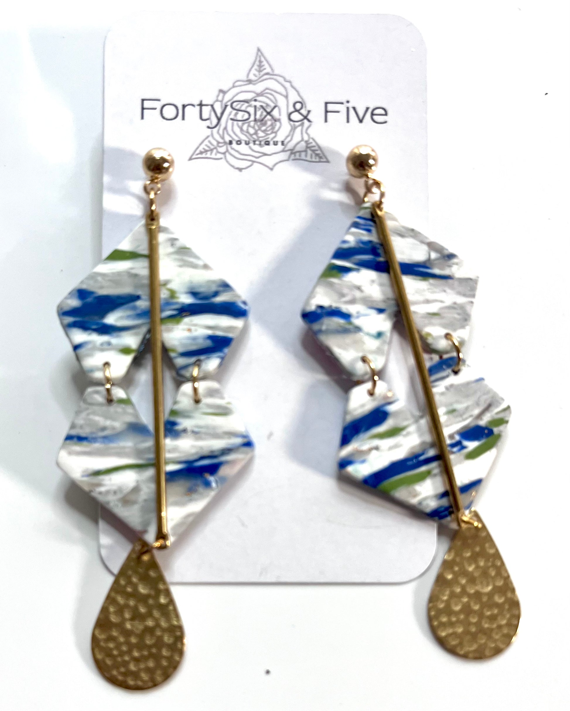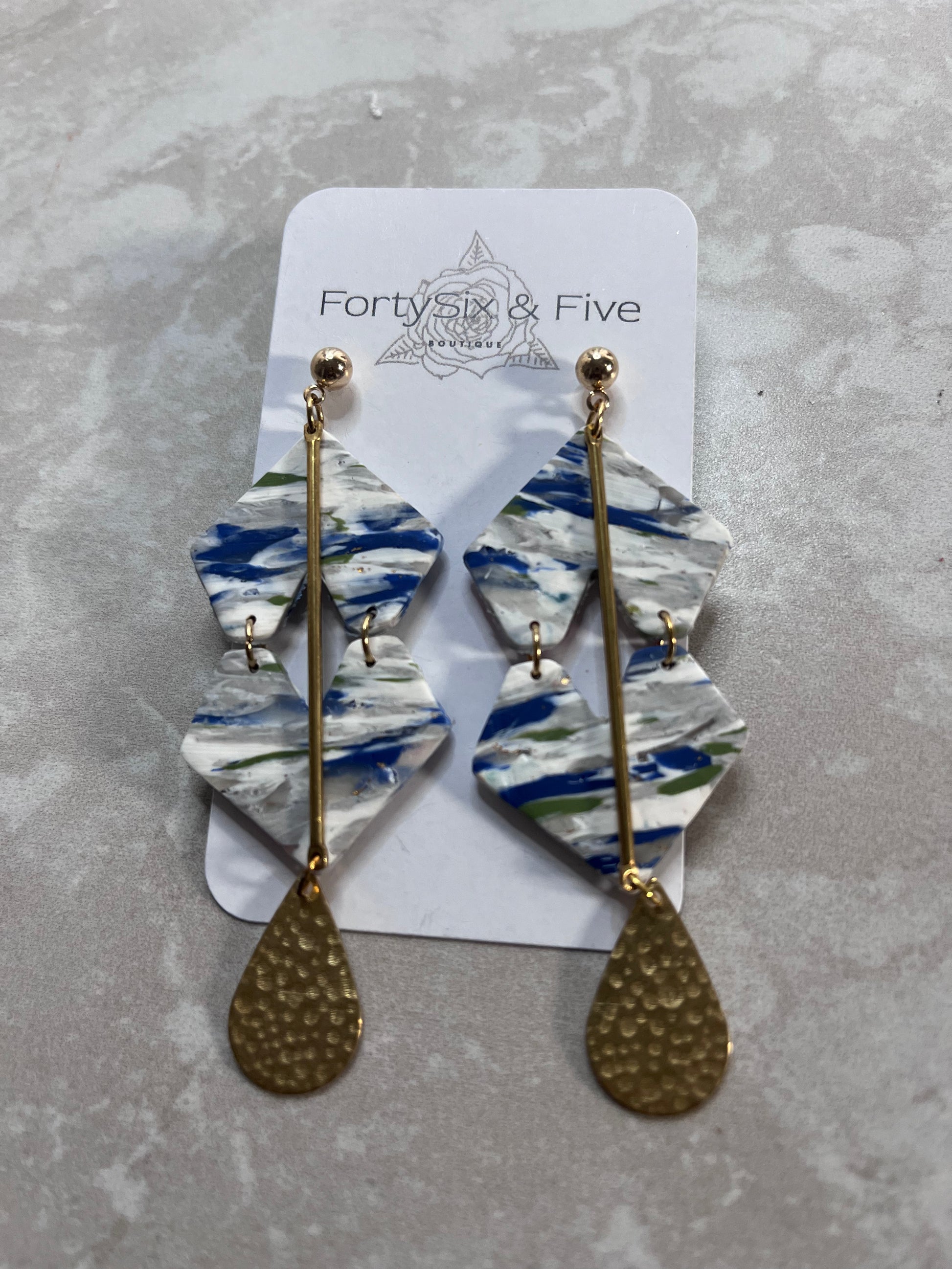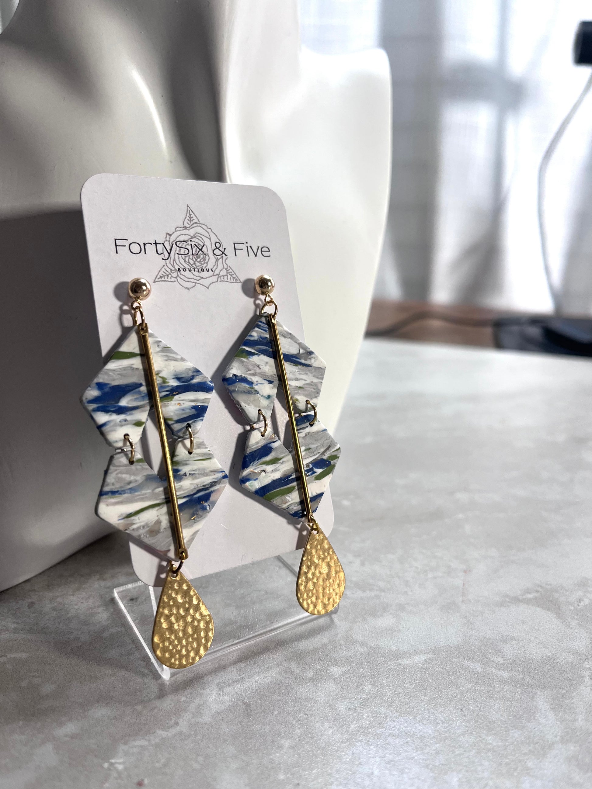 Step out in style with our Prosperity dangles! Made with blue white and grey polymer clay with specks of gold💕💕💕