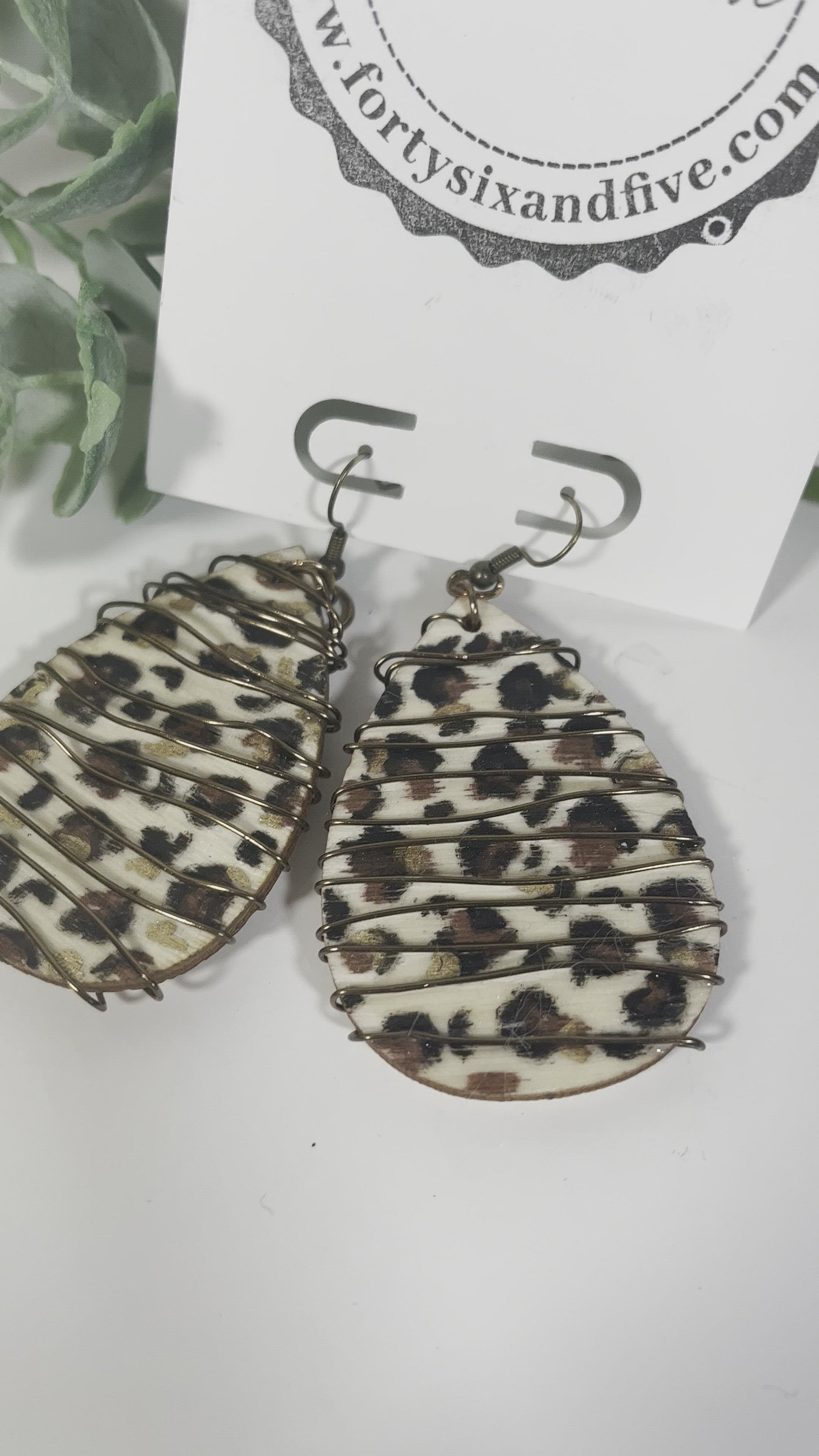 leopard hand drawn print with wire wrapping and a style so chic you will want to wear this fierceness every single day! Amazingly lightweight and eye catching. This girl is a winner!