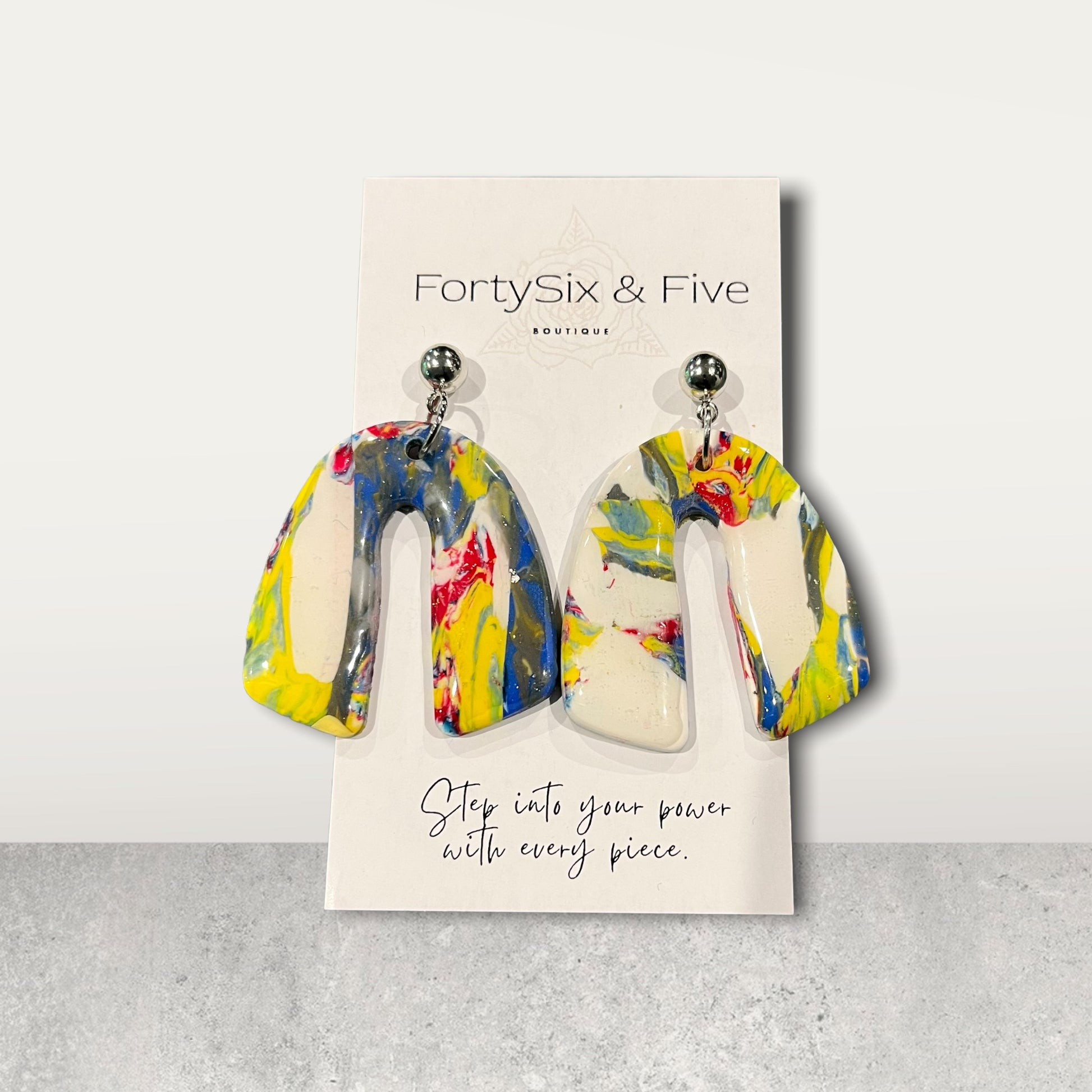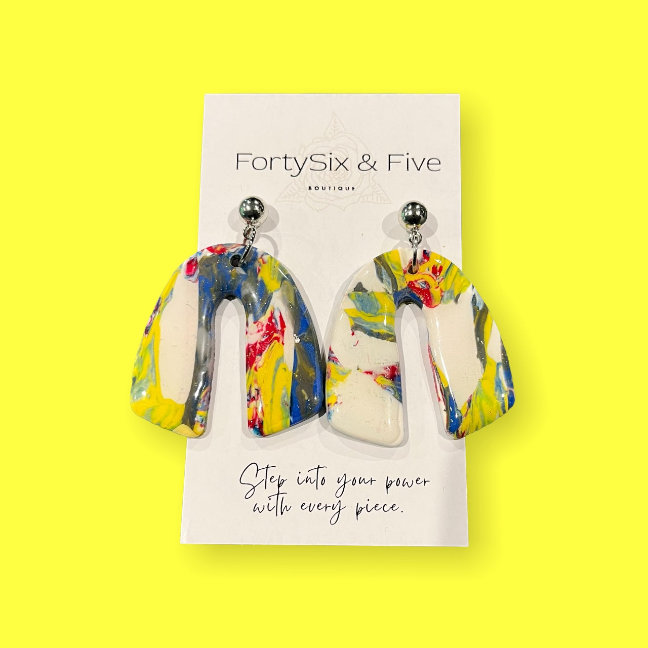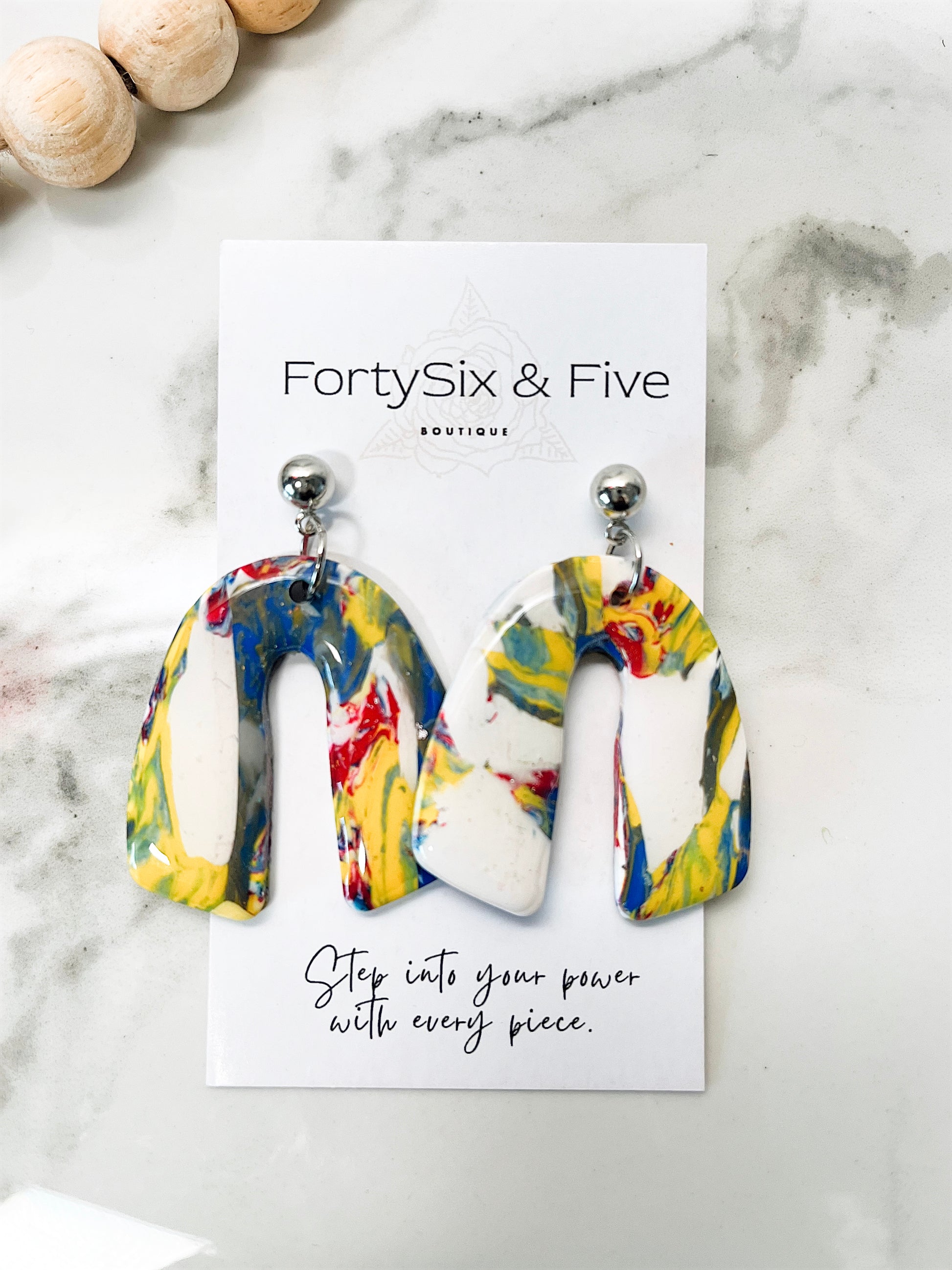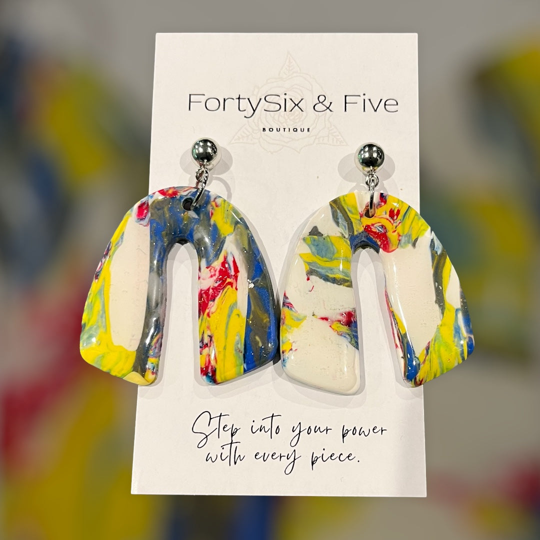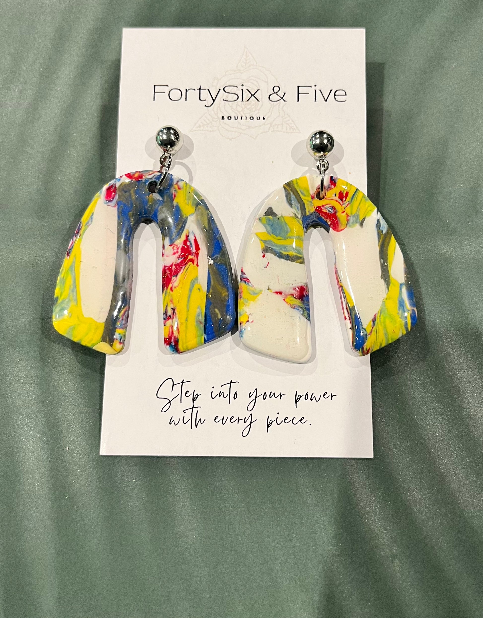The greens , blues , pops of yellow and red make this unique earring POP with expression! It has been created with love and passion by our owner and creator Taniesha. This is a perfect gift for yourself or someone you love!