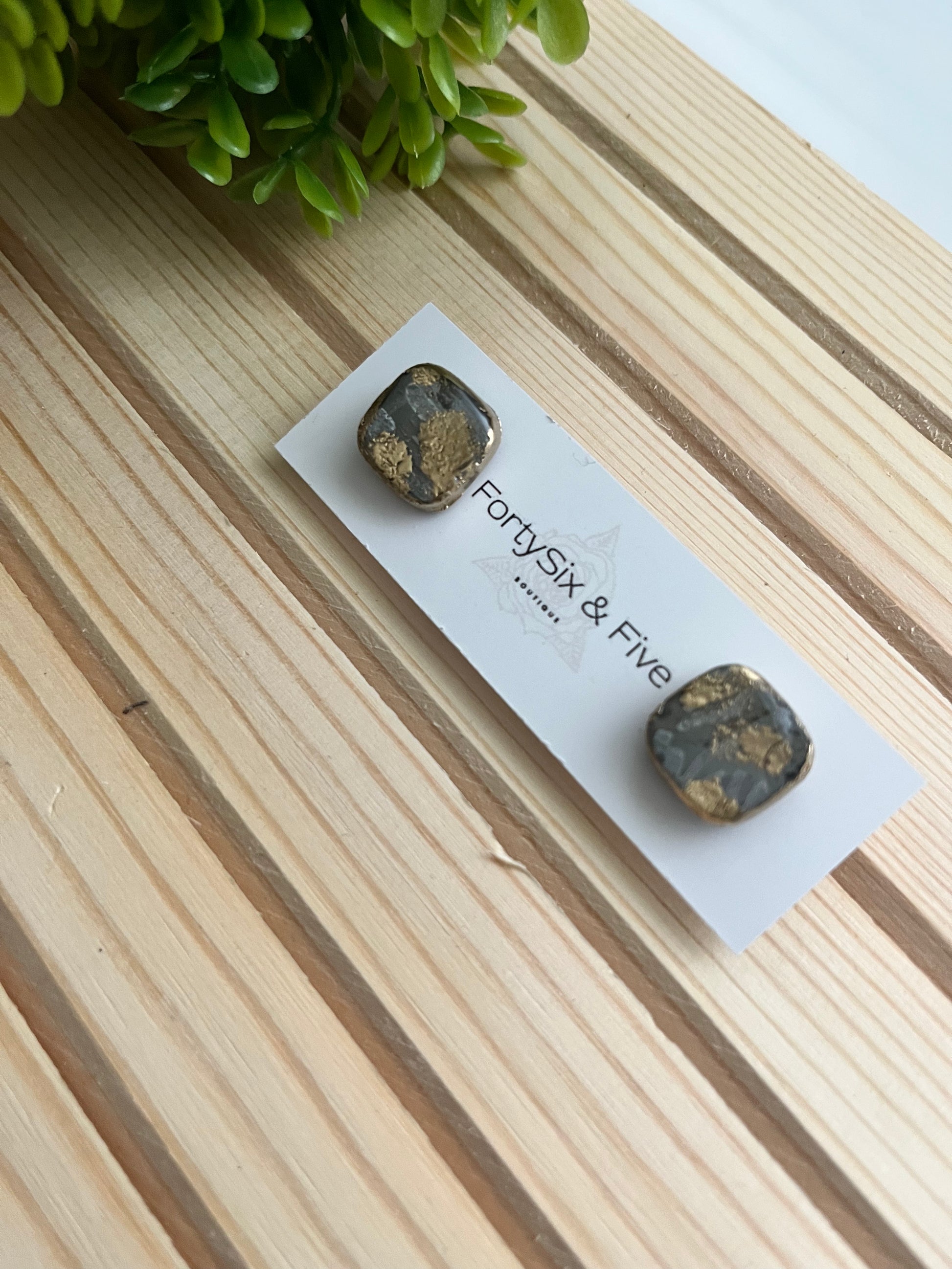 Here , we have a beautiful combo of neutral with a little razzle dazzle that is just so perfect! Our studs are hypoallergenic and nickel free. I created these with all my handmade LOVE💕💕💕.