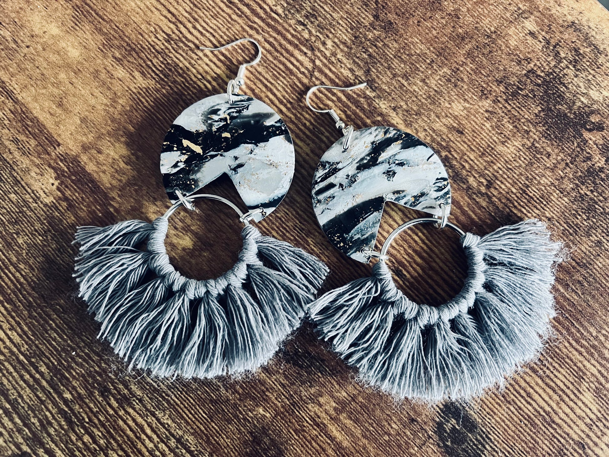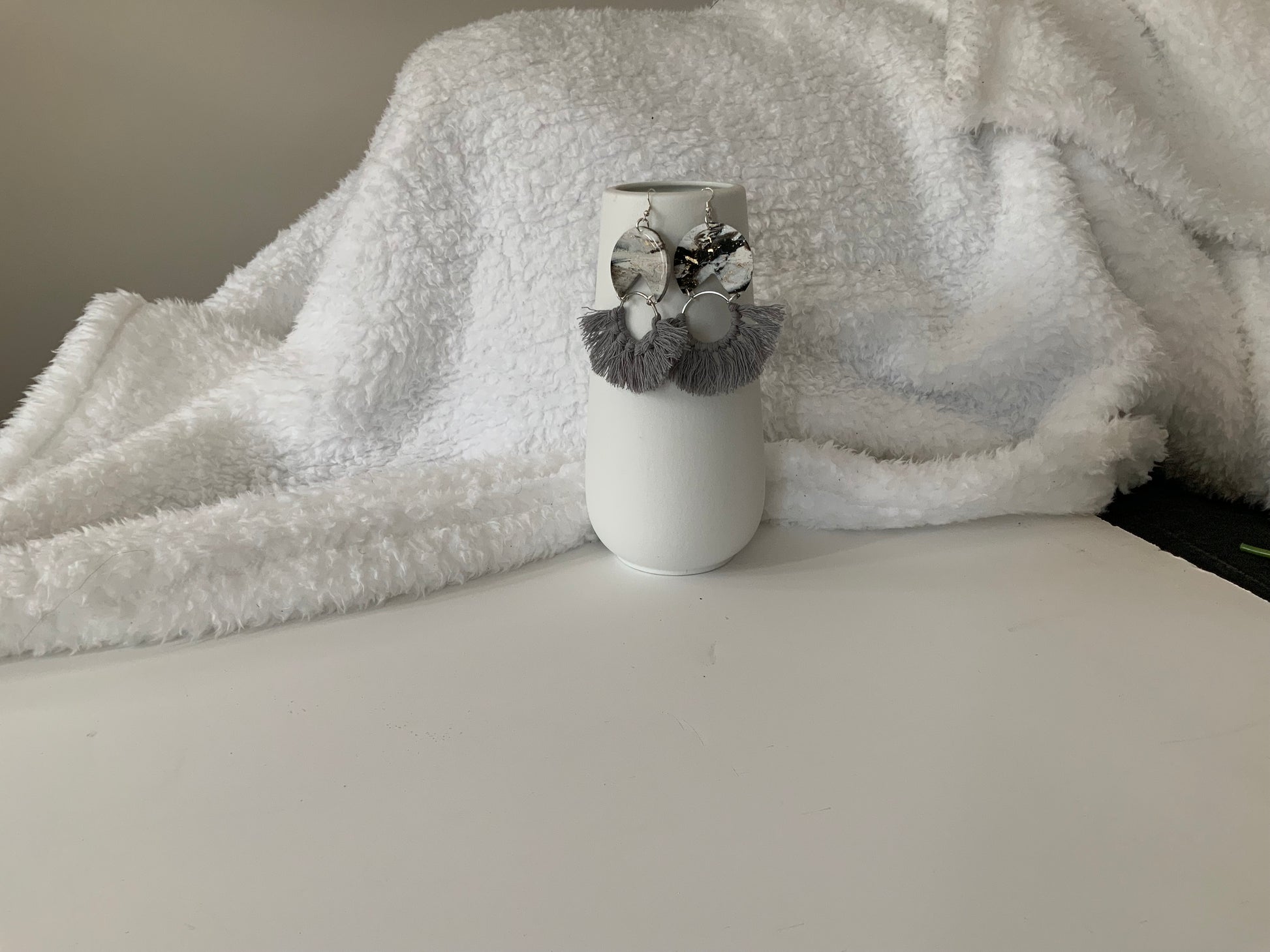 💕Lightweight and STUNNING. These earrings when worn will get you the most compliments. They are a neutral gray and beautifully blend in with any outfit. They are a must have… to get them today💕💕💕.
